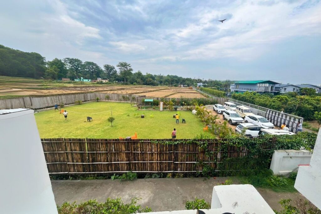 The open lawn at Three Heavens Resort in Jim Corbett offers a serene and picturesque setting amidst lush greenery. Designed to provide guests with a tranquil outdoor space, the lawn is ideal for relaxation, leisurely walks, or simply soaking in the natural beauty of the surroundings. Each accommodation unit features a private sit-out area facing the lawn and garden, allowing guests to enjoy the verdant views right from their rooms. The lawn's proximity to the resort's garden and pool areas enhances the overall ambiance, making it a perfect spot for morning yoga sessions, evening tea, or casual gatherings with friends and family. the resort's emphasis on comfort and nature suggests that the lawn is best suited for intimate gatherings and personal relaxation.